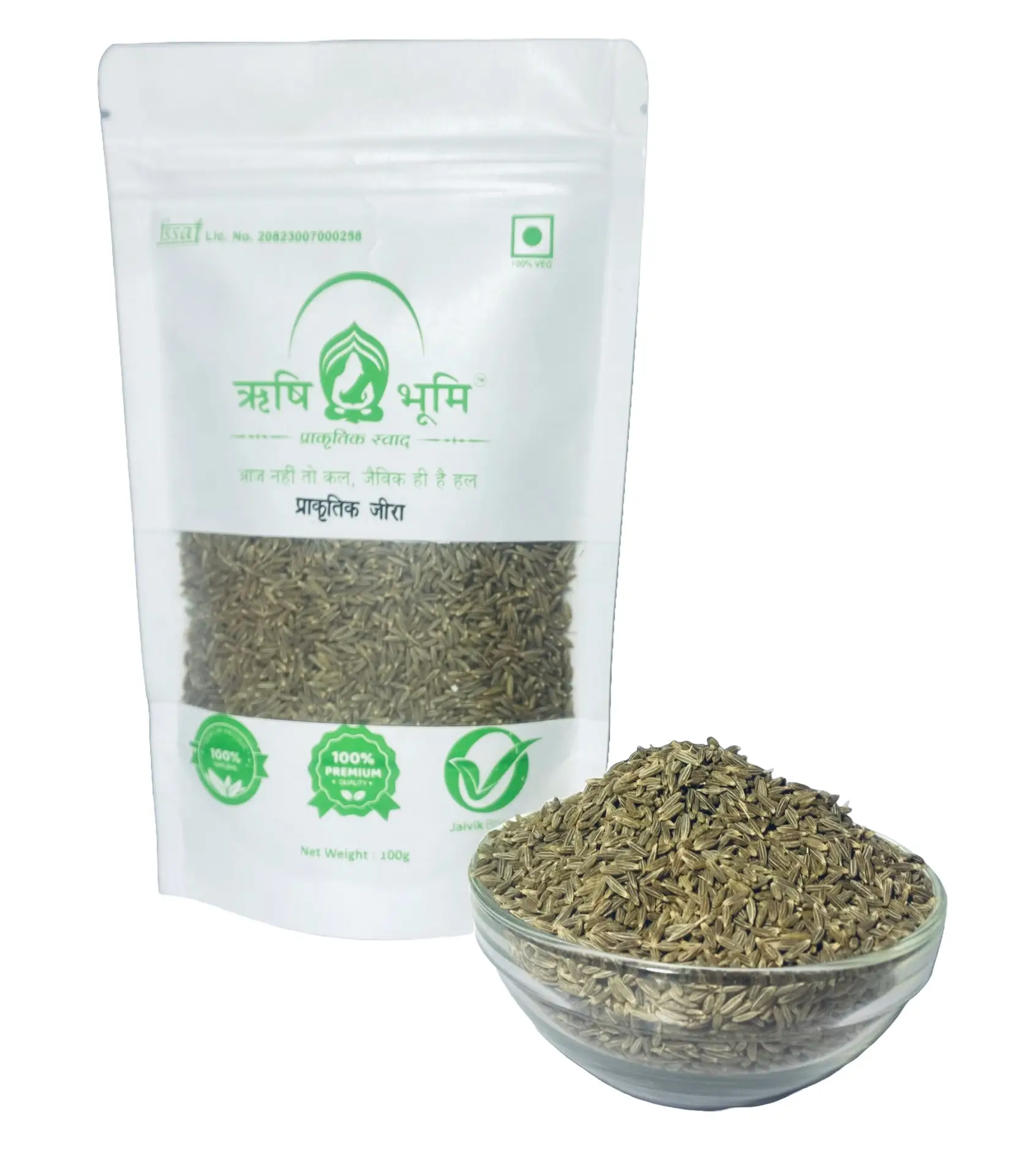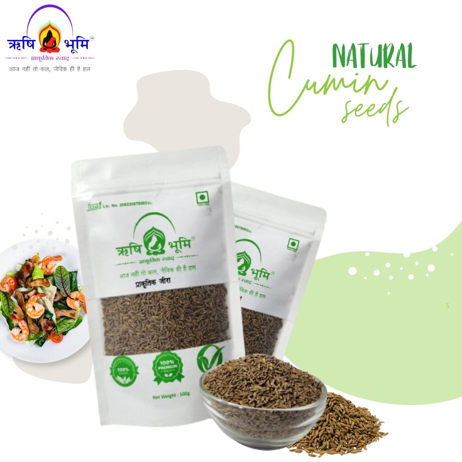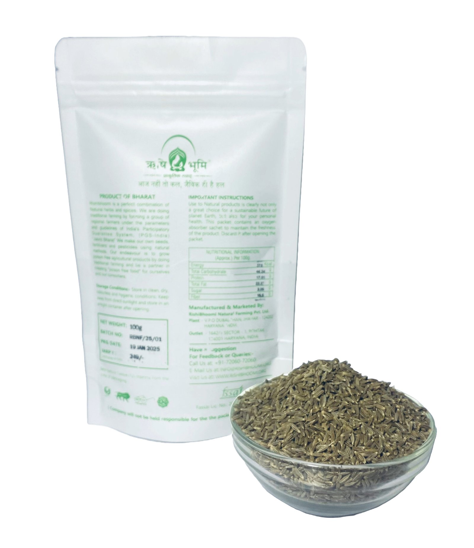 Rishi Bhoomi Natural Cumin / प्राकृतिक साबुत जीरा / 100% Pure & Natural Ayurvedic / High Curcumin Certified / Anti-Oxidant & Anti Cancer Properties / Solar Dried & / Sourced From Rajasthan | Pack of 100 gram